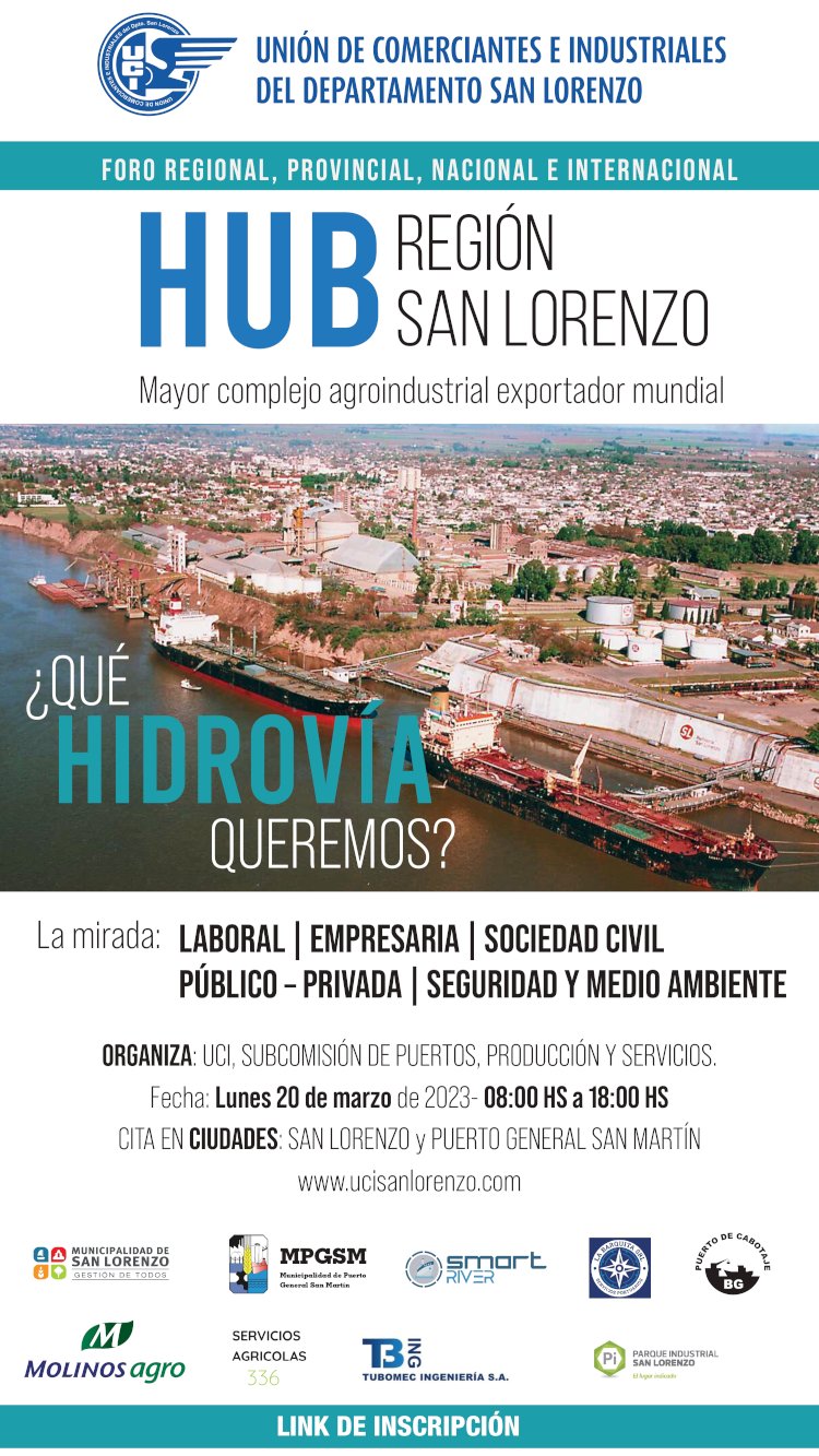 UCI: (20/03/23) > INVITACIÓN > I FORO REGIONAL, PROVINCIAL, NACIONAL E INTERNACIONAL > “HUB REGIÓN SAN LORENZO” Mayor complejo agroindustrial exportador mundial “¿QUÉ HIDROVÍA QUEREMOS?”